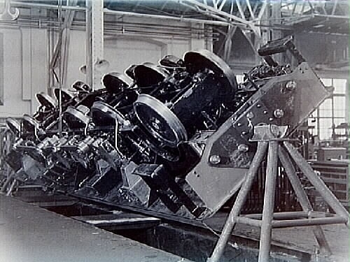 Statens Järnvägars Huvudverkstad (CV), verkstadsinteriör, underrede till ett dieselhydrauliskt SJ Tp lok .