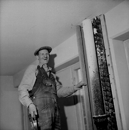 Titel: Byggnadsarbete, interiör, en man. Oscaria (beställare ?).