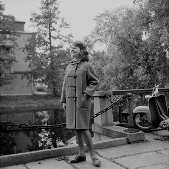 En kvinna. Kläderna från Konsum Damkonfektion.