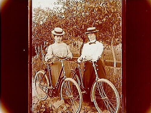 Två kvinnor med cykel.