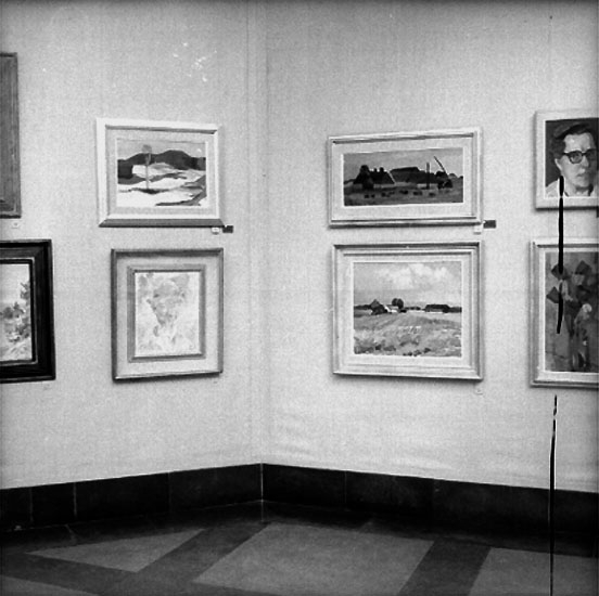 Konsthallen, interiör av utställningssalen, Inga Bergs utställning, tavlor.
