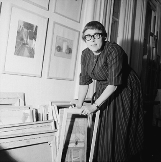 Titel: Interiör, en kvinna. Konstnär Inga Berg