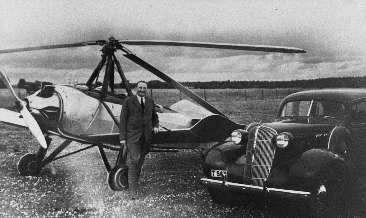 Autogiro år 1939, Theodor Dieden. Bilden är tagen på Karlslunds flygfält.