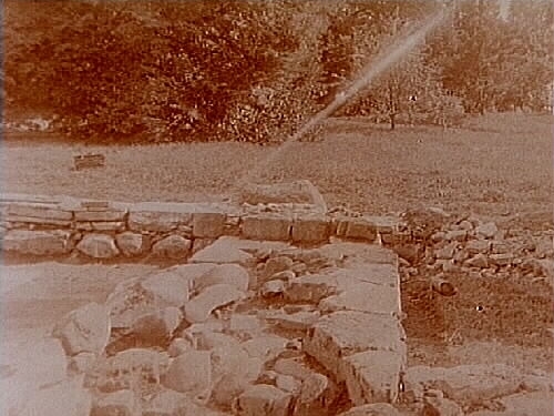 Titel: Riseberga klosterruin, kapitolsalen, trappuppgång till dormitorium. Bilden tagen från väster, under konservering.