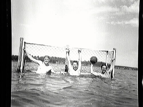 Vattenpolo vid sjön Lången. I målet fr.v. Gösta Klingberg, Kalle Friman och Göte Hjelm.