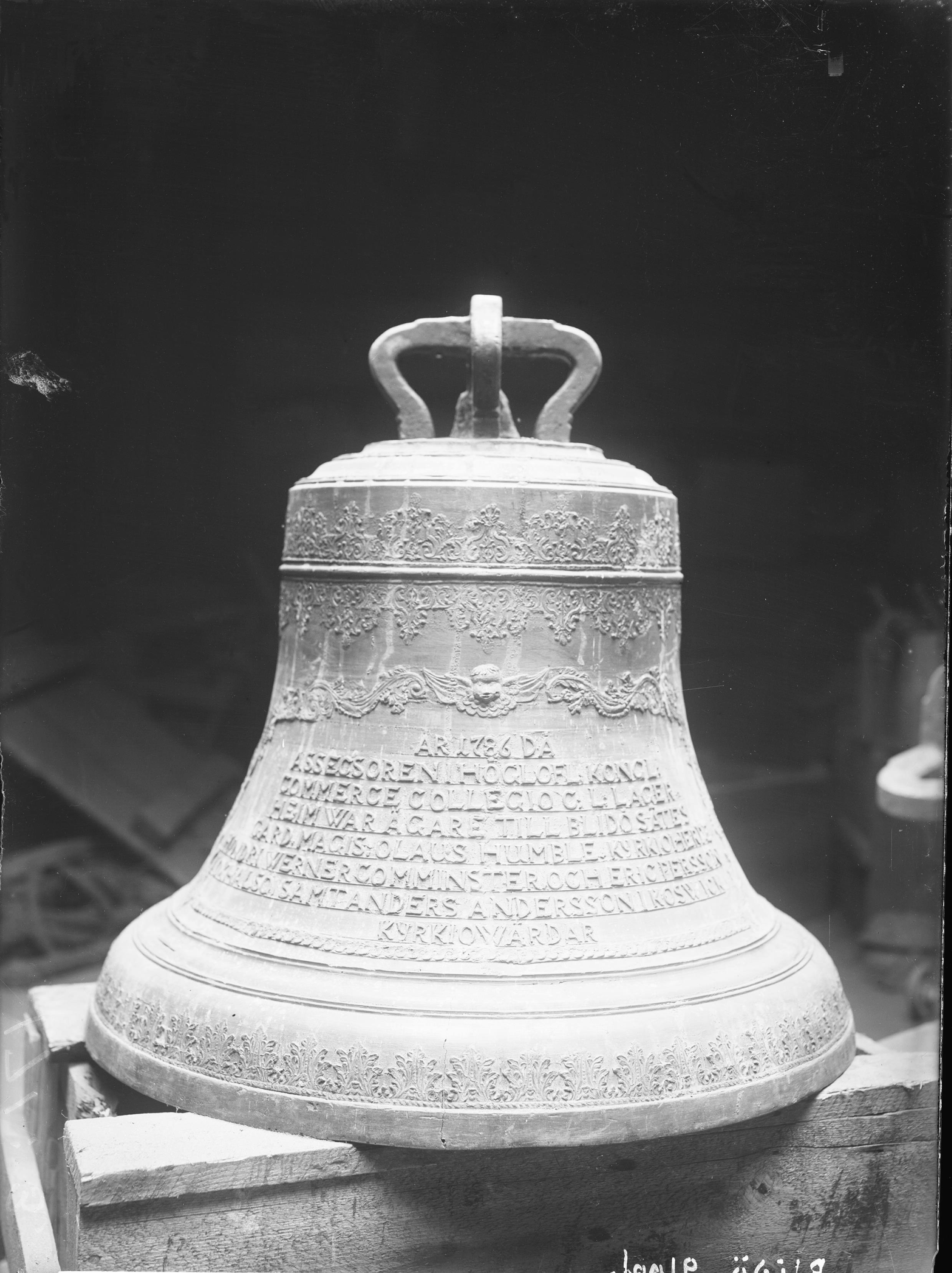 Klocka, lillklocka, gjuten 1786 av Johannes Zacharias Mårtenson i Stockholm, omgjuten 1917.