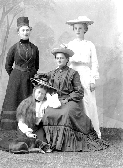 Ateljé. Stående fr.v. Viktoria Andersson född Frykman 1875, lärarinna,