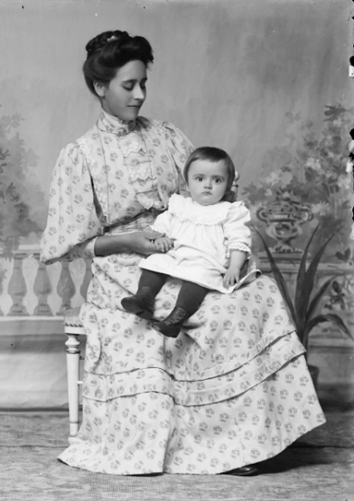 Dam med liten flicka i knäet.