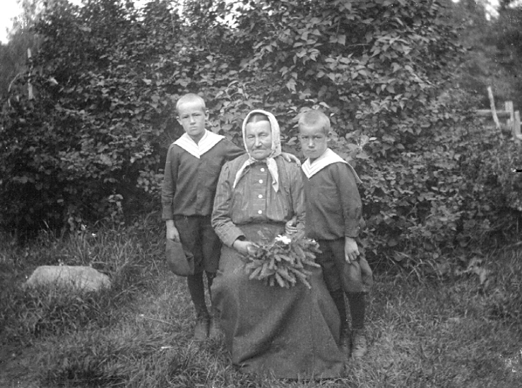 Hägga-Lotta med sina sonsöner Nisse och Evert.