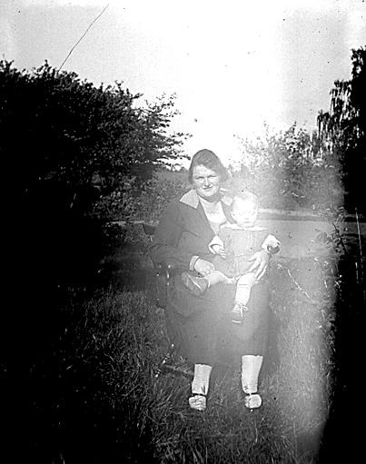 Karin Andersson med sin förstfödda, Anita, i trädgården på Milsmaden.
