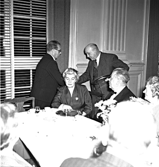 Skara. Järnvägsmannaförbundet hedrade trotjänare 1950-talet.