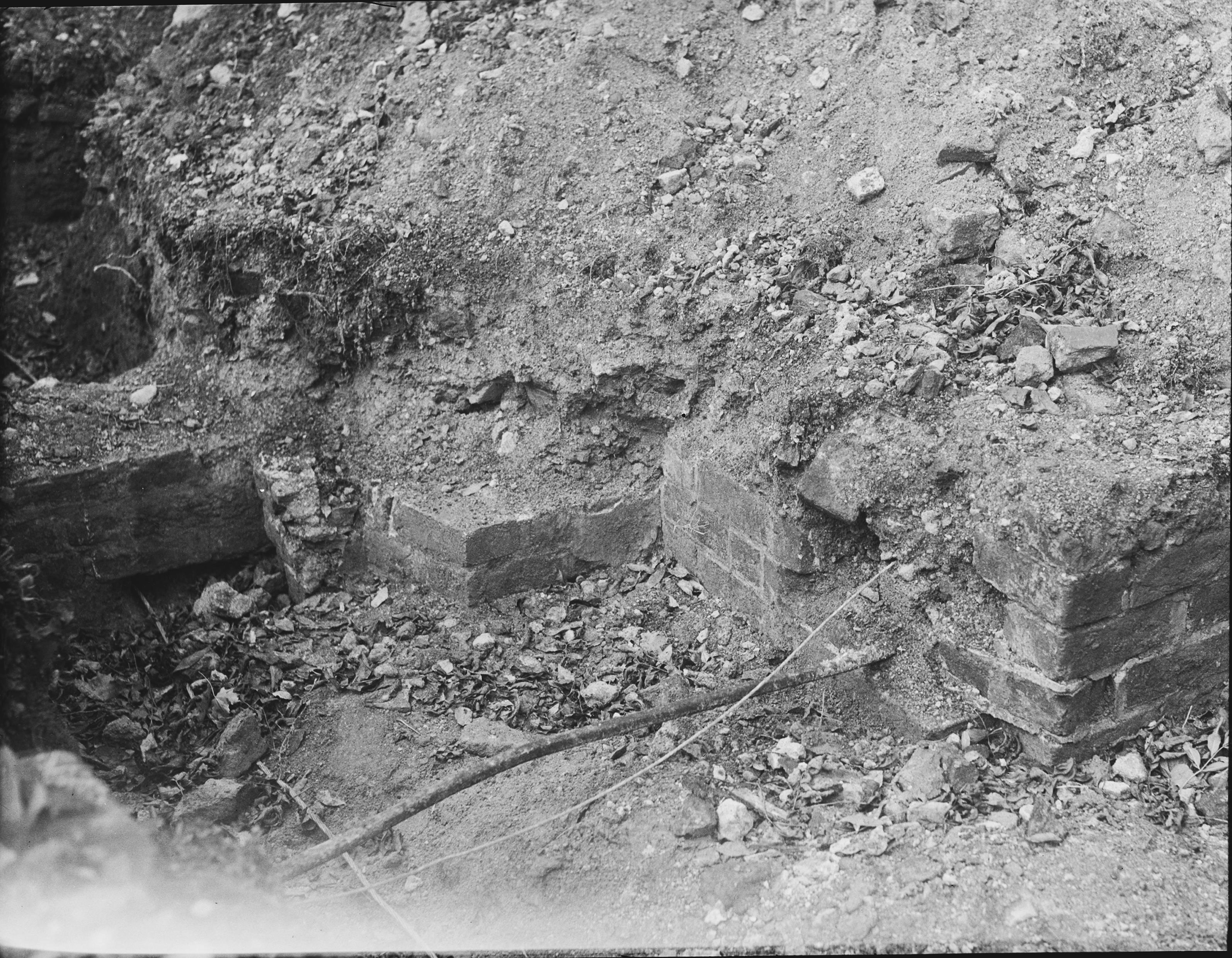 Östra korsgångens östra mur. Hörnet mellan mur 3 och mur 1 med åskledare och elektrisk ledning. Från sydöst.