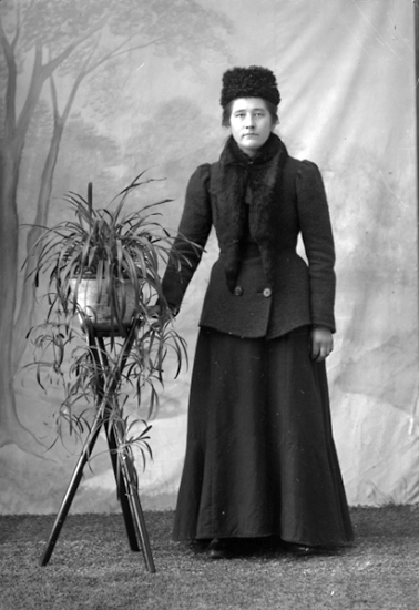 Dam vid blompiedestal.
