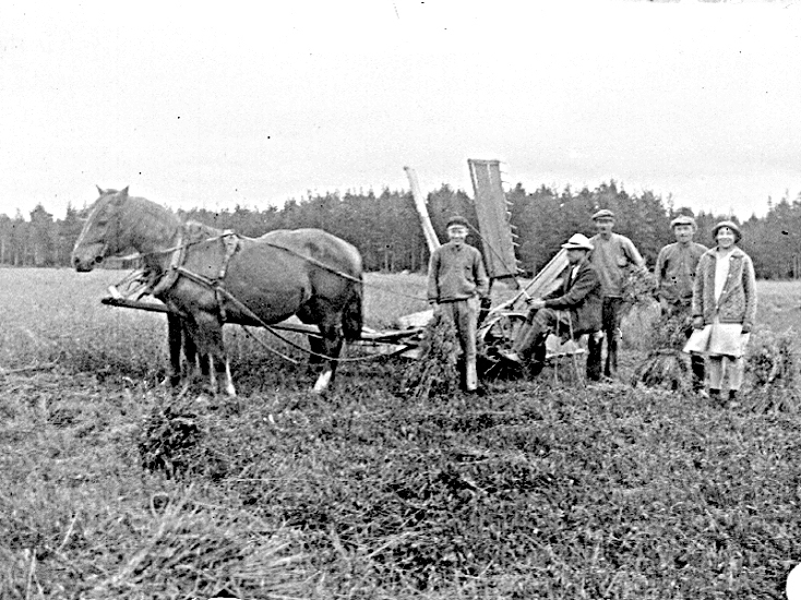 En s.k. "självavläggare" en föregångare till självbindaren. Maskinen samlade upp säden i kärvar och lade av dem i snygga länkar men sedan fick man "ta upp" och binda kärvarna, eller nekarna, som man säger i vissa delar av Sverige, för hand.