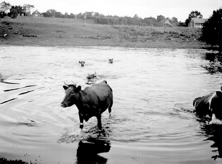 Simmande kor i Hornborgaån.