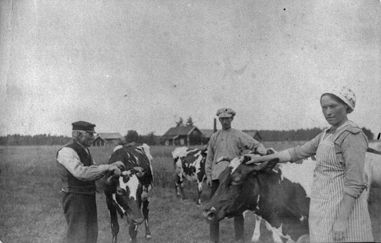 Karl Olofsson med sina barn, Bror och Natalia Karlsson, Bålerudshed.