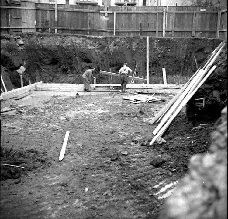 Grundgrävning för tillbyggnad. Östra schaktkanten.