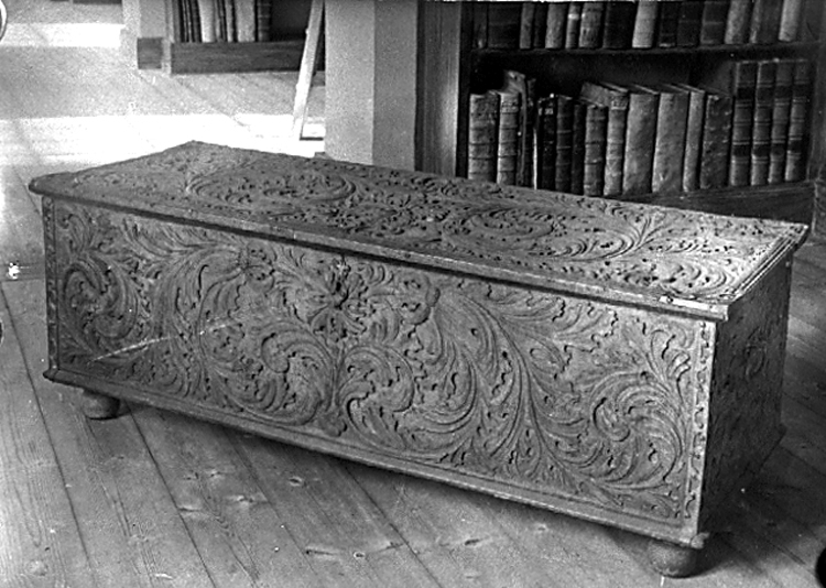 Kista med akantusslingor i Skara Museum.