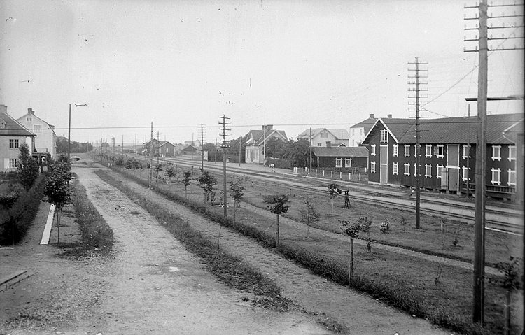 Järnvägsparken, järnvägsstationen och Lantmännens magasin till höger.