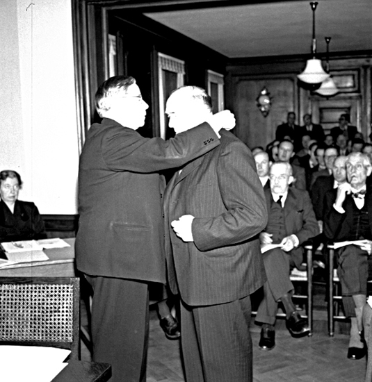 Skara. Hushållningssällskapet. Landshövding Domö överlämnar utmärkelser.