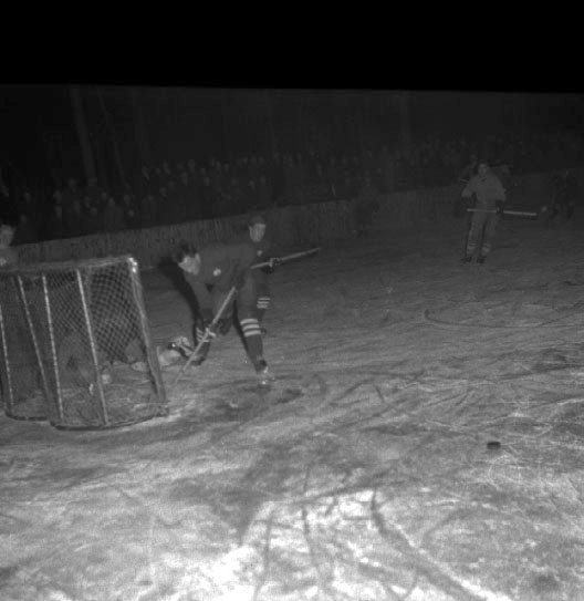 Skara. Ishockey: Invigning av Petersburgsbanan 1953.