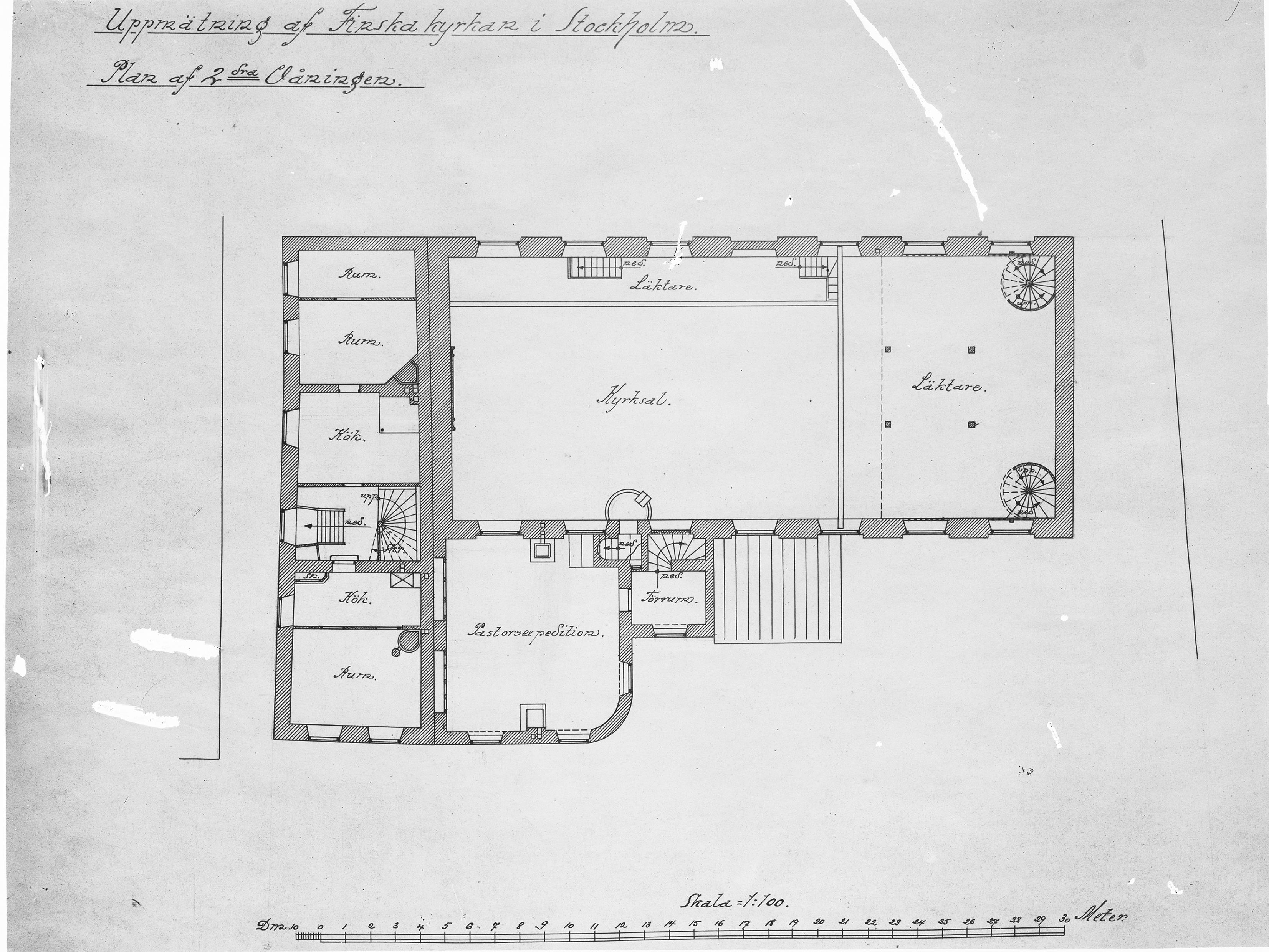 Planritning, andra våningen. Foto efter uppmätningsritning i pastorsämbetet.
