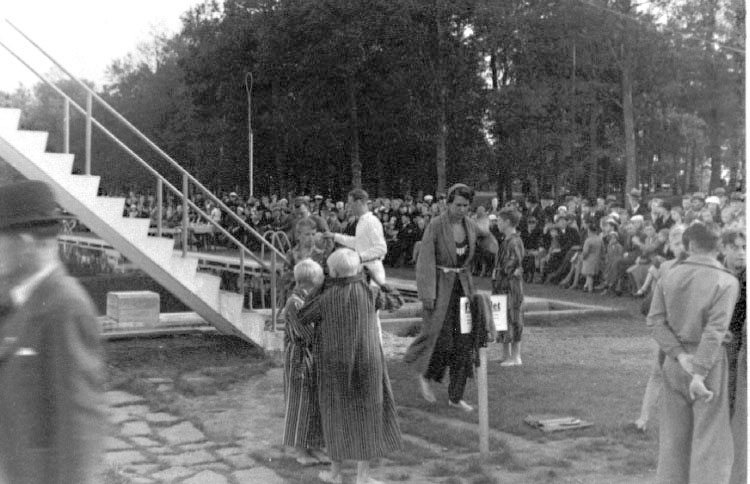 Lång kvinna i badrock heter Hellberg och var simlärarinna vid badet.