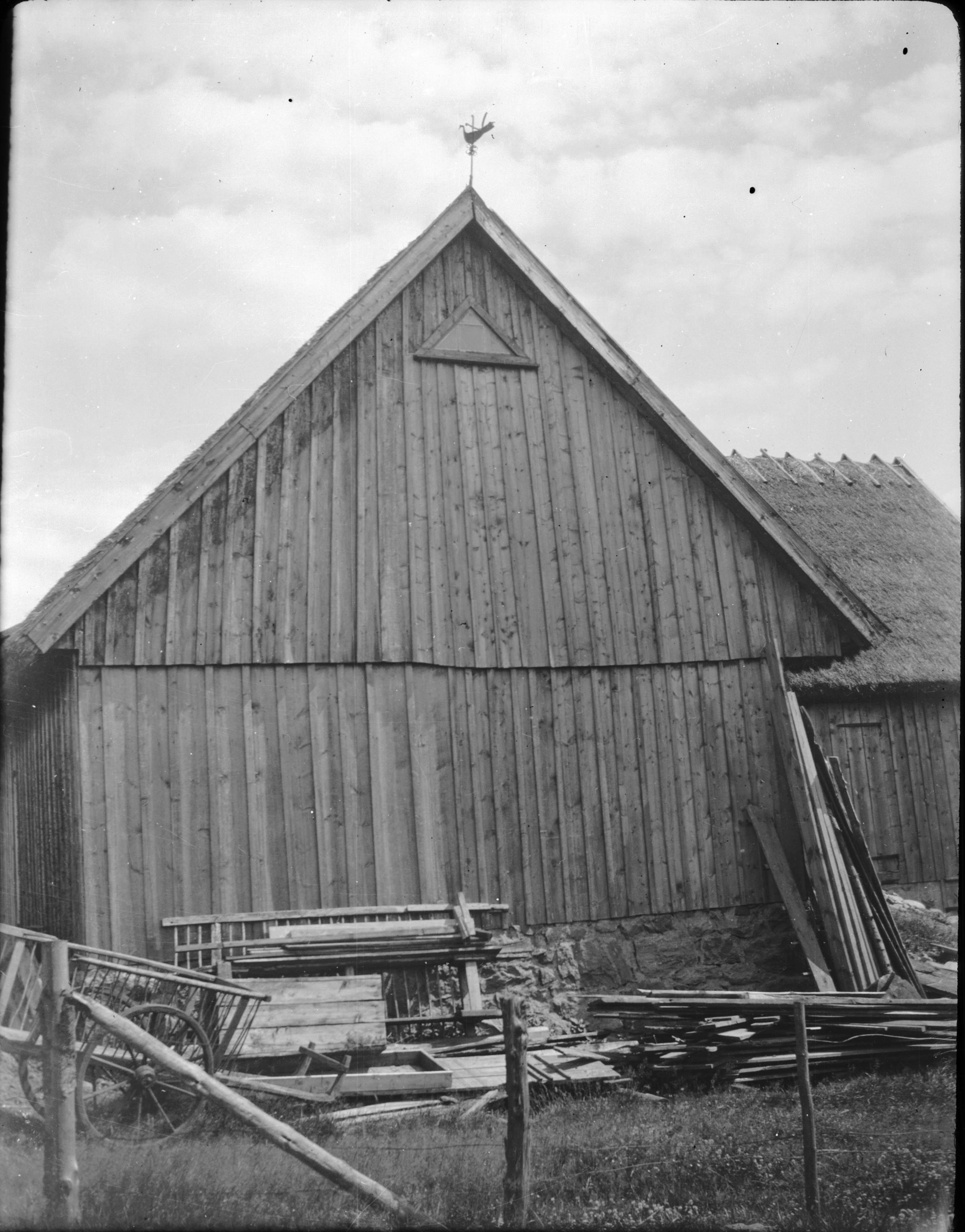Prosteköp uppfört av gamla kyrkans virke med kyrktuppen. Snabbinv.