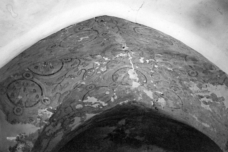 Den romanska stenkyrkan, riven 1877, hade kalkmålningar från 1400-talet, troligen utförda av Amund, och ett skulptursmyckat gravkor för adelssläkten Ribbing från 1646. Detta finns ännu kvar på ödekyrkogården.