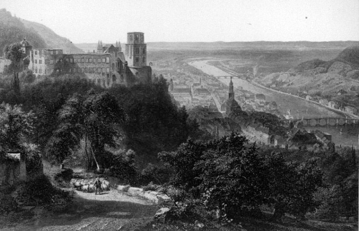 Utsikten från Walkekuhr åfvan Heidelberg m. slottet.