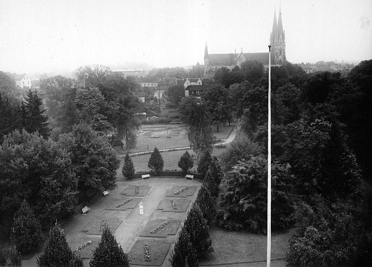 Skara. Kv Stadsträdgården mot söder, sed från museets tak.
