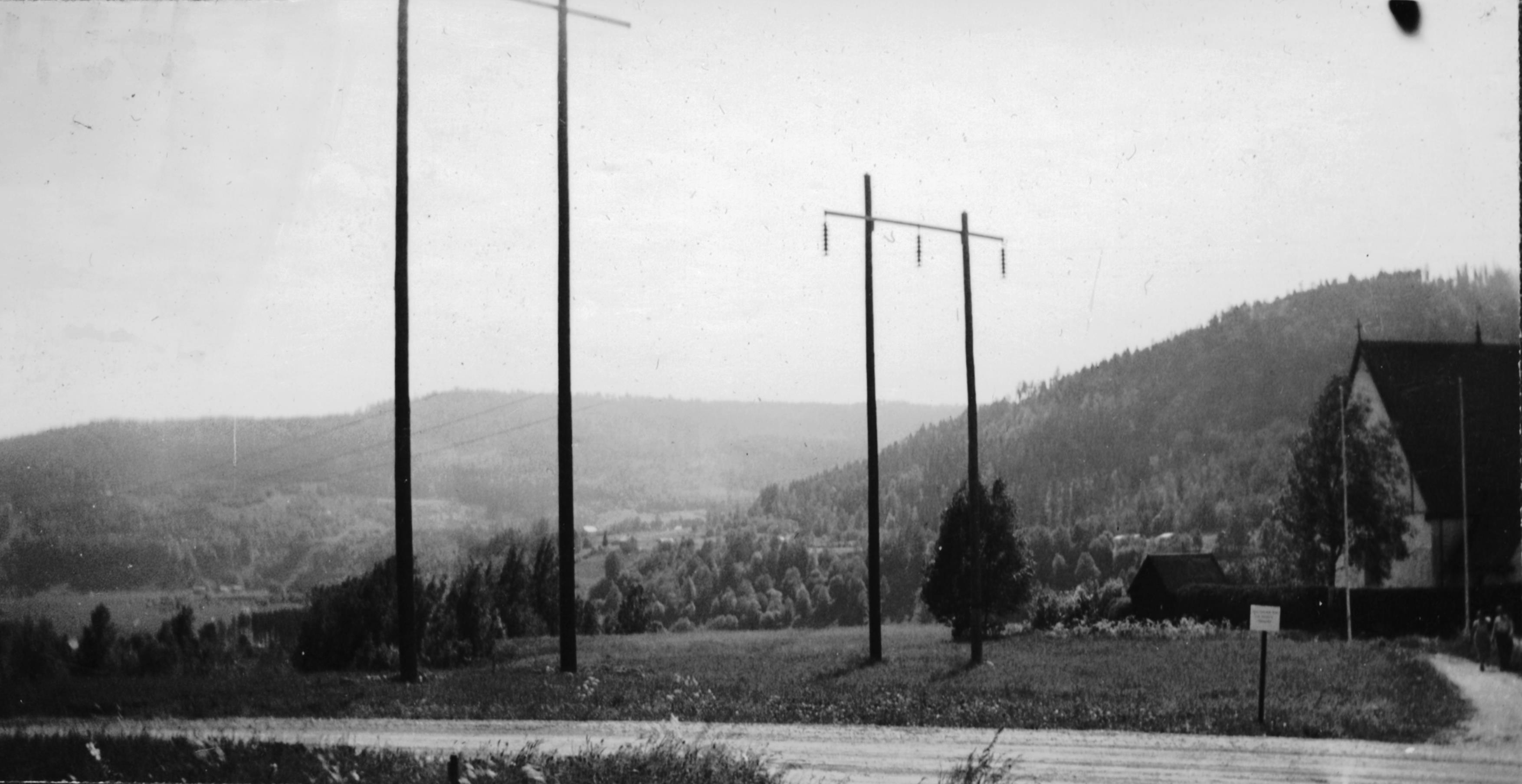 Östra delen av kyrkan. Bilden avser att illustrera kraftledningens läge i förhållande till kyrkan.
