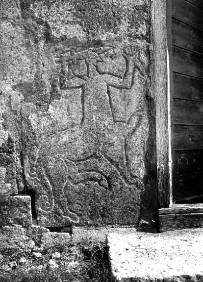 Kyrkan, sten i västra väggen.