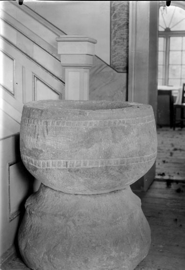 Västergötland. Älvsborg. Grude sn, Kyrkan, interiör, dopfunt.