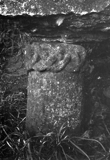 Blidsberg sn. Kyrkogården, rester av portal. "Kapitäl". Anders Rolands samling.
