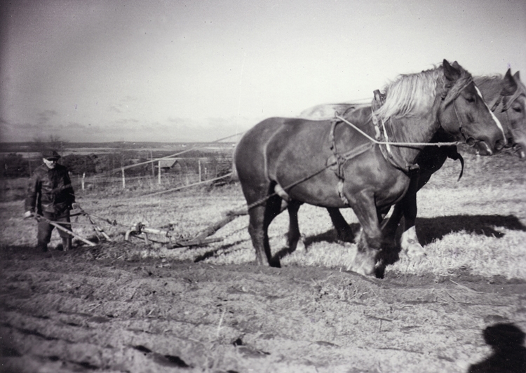 Lars Erikssons far, Erik Gustavsson plöjer.