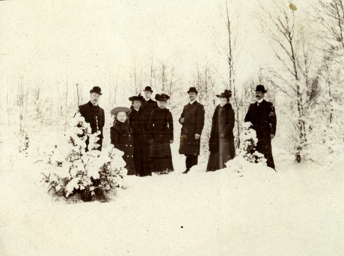Familjen Pettersson m fl på vinterpromenad
