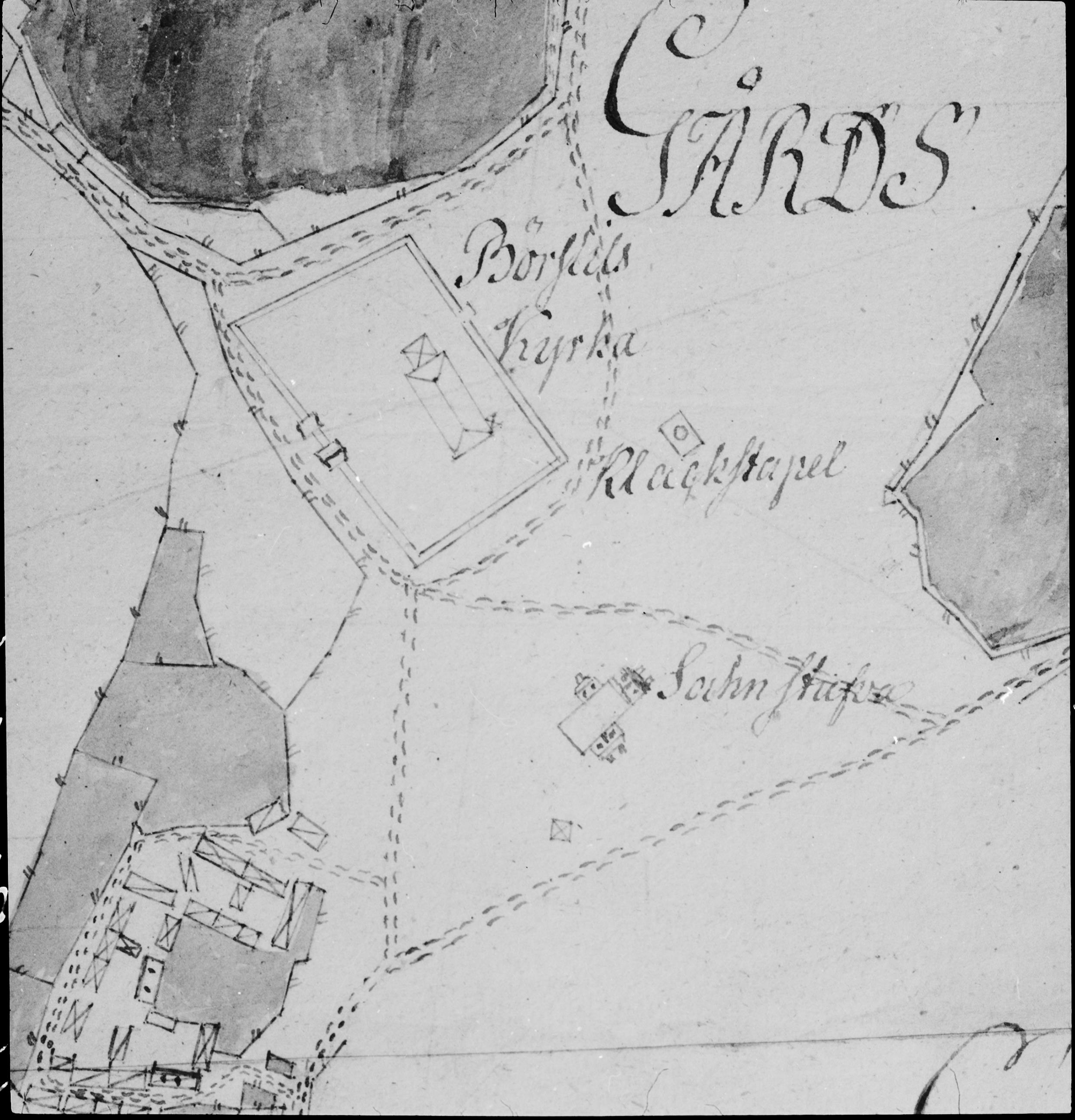 Kyrkogårdsplan, ritning från 1770-1771, renoverad 1827. Avfotograferad