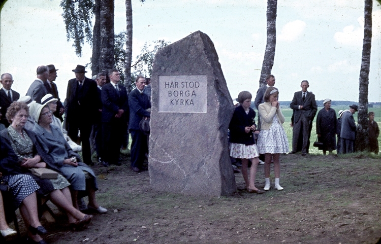 Minnessten med texten: "Här stod Borga kyrka".