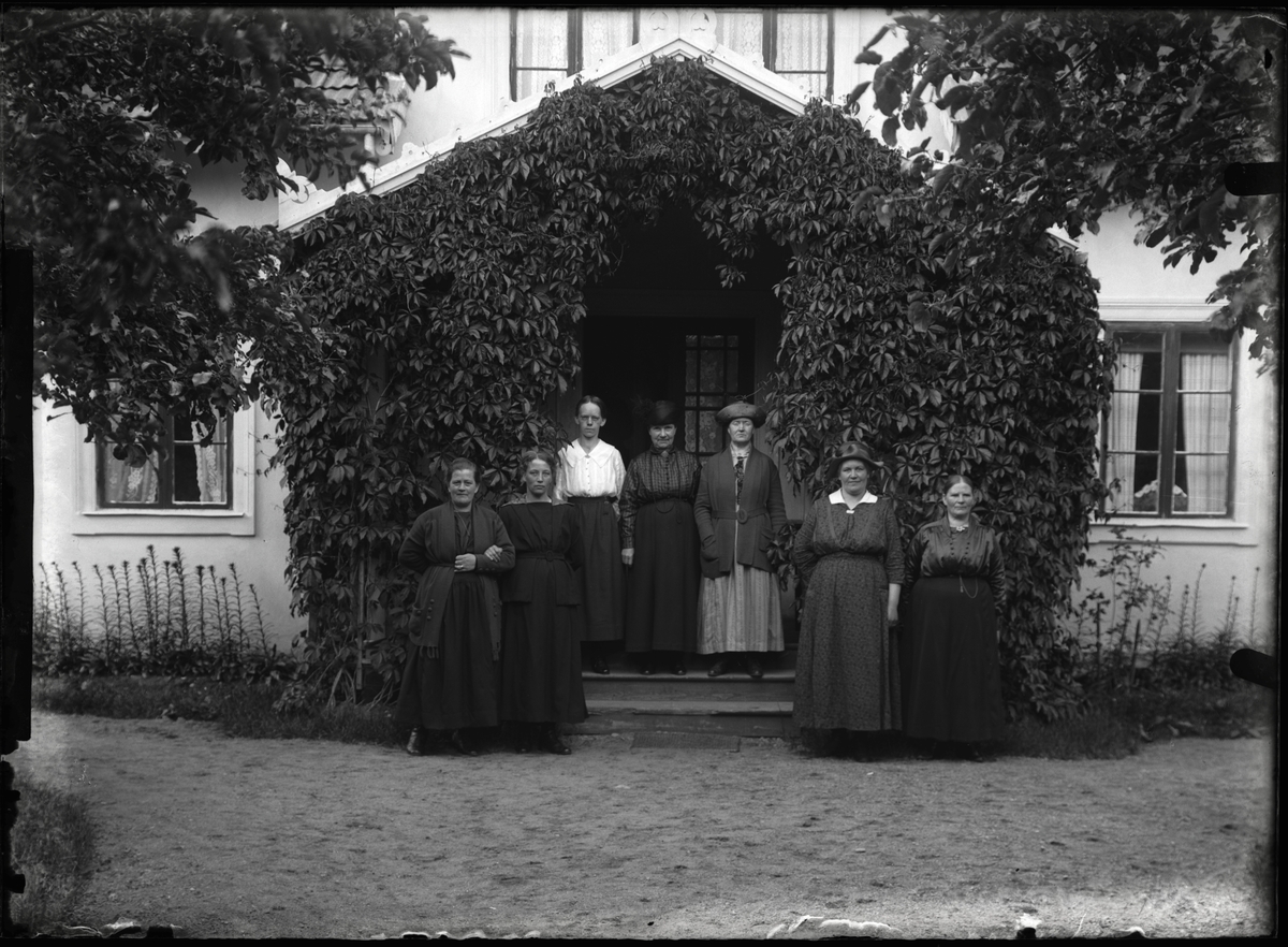 Kvinnor framför bostadshus