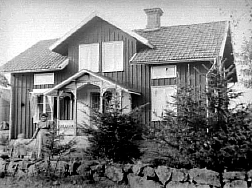 FRU HOLM MED DOTTER FRAMFÖR HUSET.