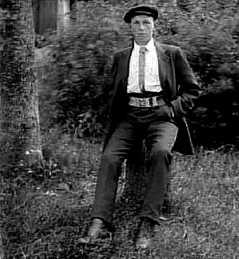 EN MAN SOM SITTER PÅ EN STUBBE.