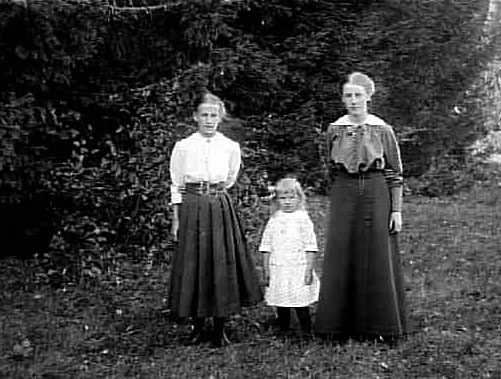 MOR MED SINA TVÅ DÖTTRAR I TRÄDGÅRDEN.
