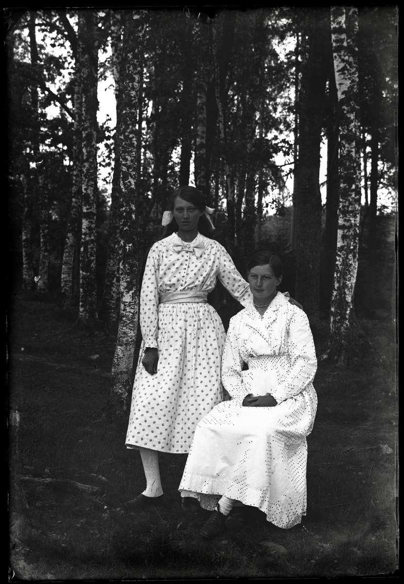 Två kvinnor i prickiga klänningar