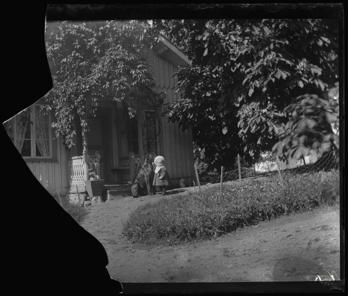 Barn framför hus