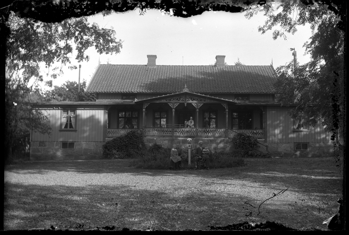 Familj framför bostadshus