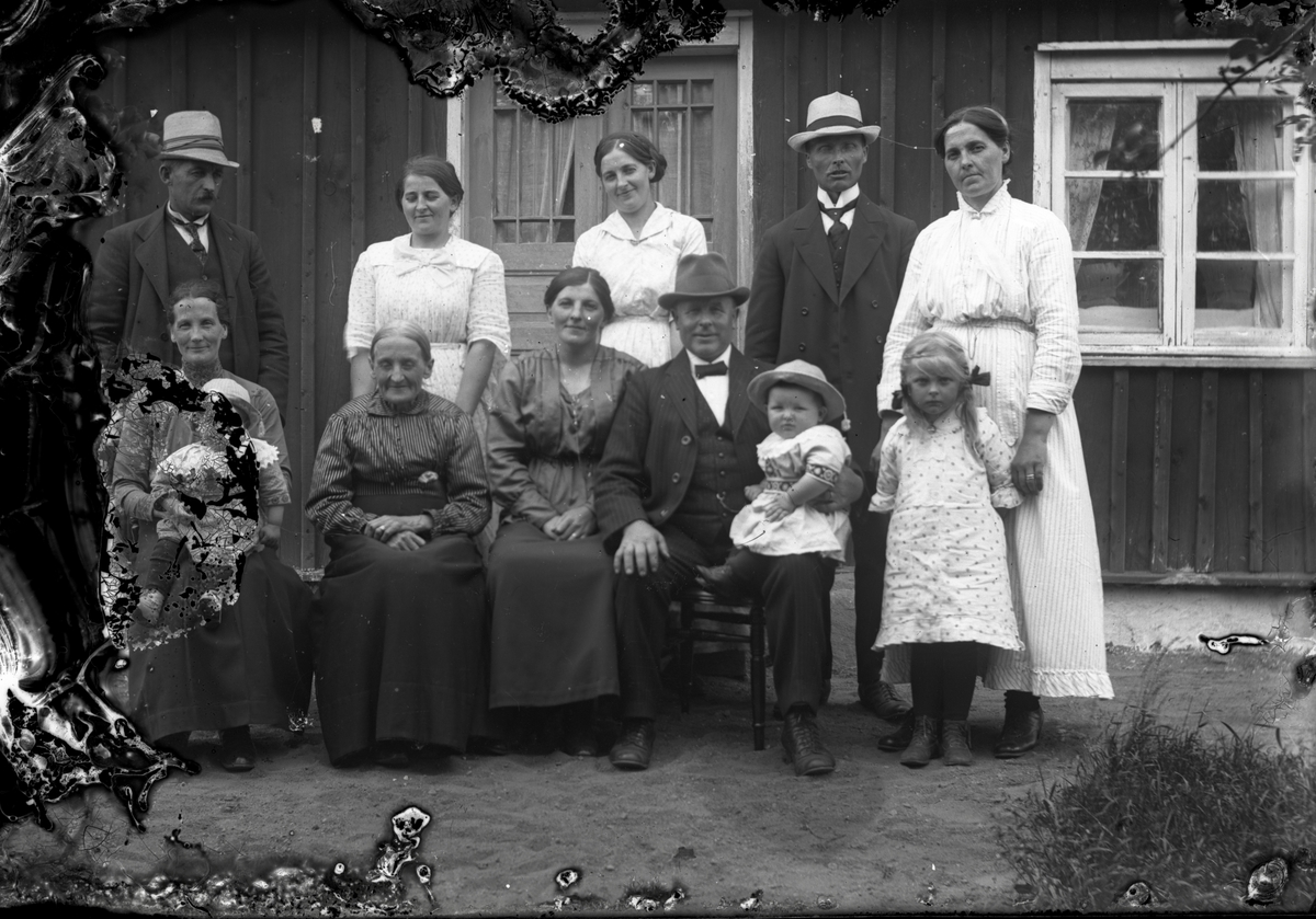 Familj framför bostadshus