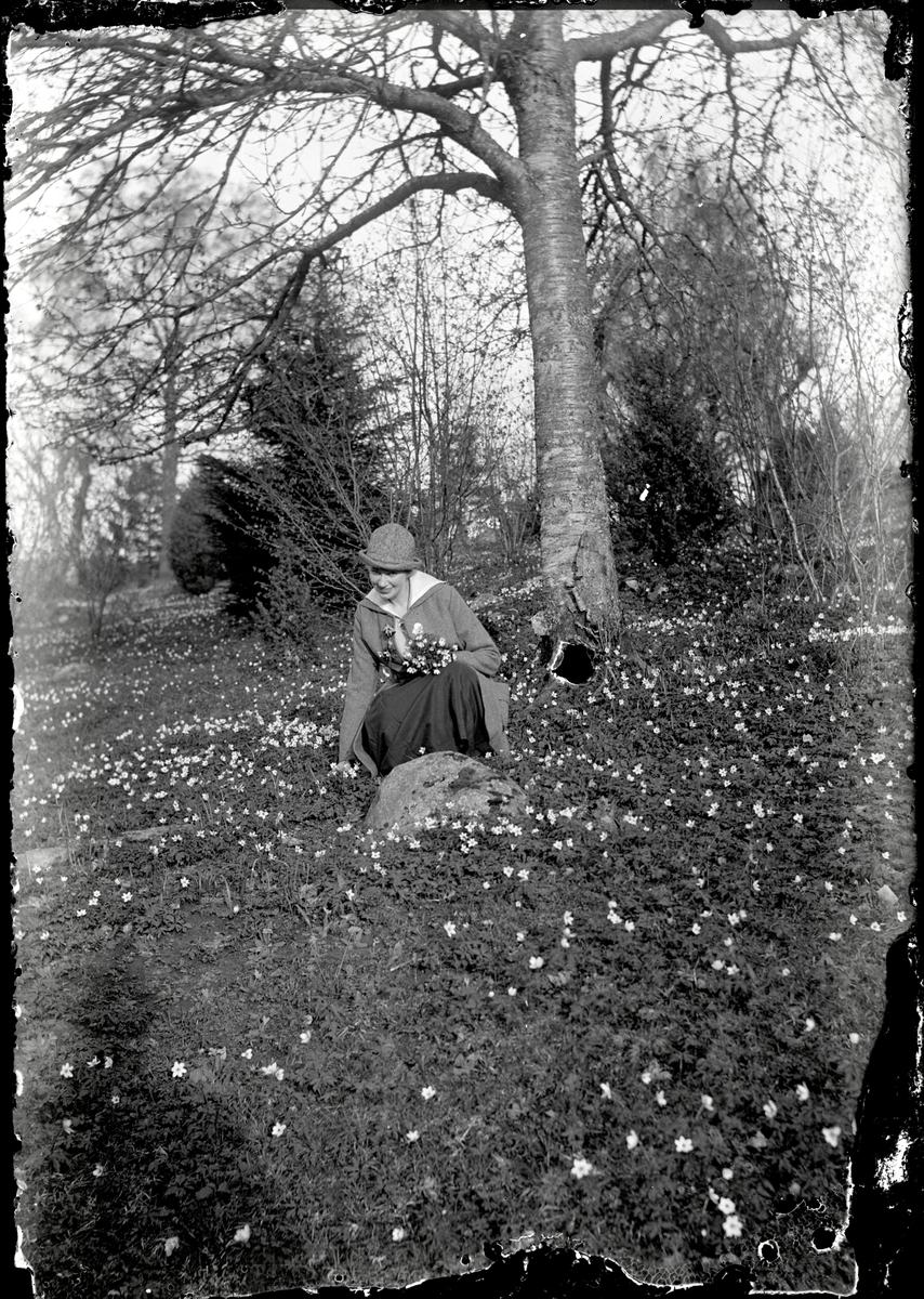 Hembiträdet i Skräddareslätten plockar vitsippor