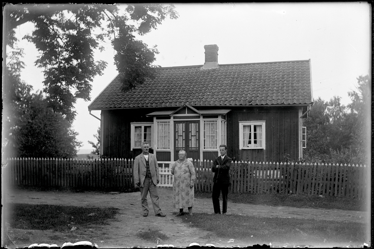 Familj framför bostadshus