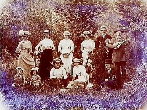 Strängmusik vid Stene, 9 vuxna och 2 barn.